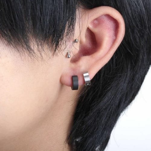 Yeh minimal black hoop earring boys aur men ke liye perfect hai jo simple, classy aur modern look pasand karte hain.