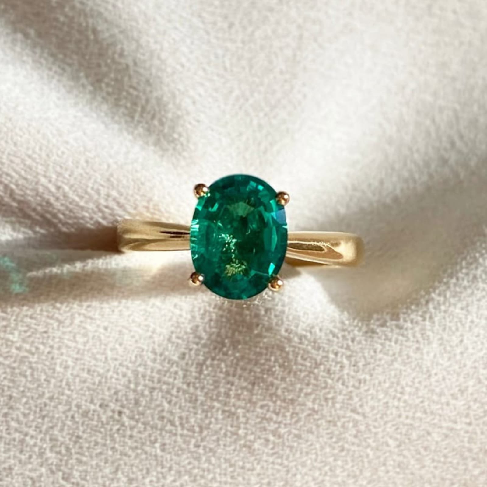 Add timeless elegance to your jewelry collection with this stunning Emerald Green Oval Solitaire Ring. Featuring a brilliant oval-cut deep green gemstone set in a premium 18K gold-plated band, this ring offers a luxurious yet minimal design perfect for modern women.